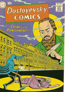 Crimen y castigo. O Batman en la portada de la imaginaria Dostoyevsky Comics, mención elíptica a la revista Detective Comics, primer hogar gráfico del Hombre Murciélago