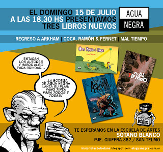 (Información de prensa) Quedan todos invitados a la presentación de Regreso a Arkham, Coca, Ramón & Fernet y Mal Tiempo, tres libros editados por Agua Negra.