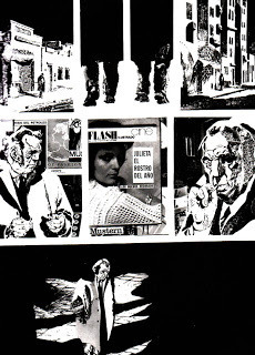 Tiempos violentos que frasean furiosas pintadas sobre paredes descascaradas (“Por la libertad del pueblo”; y no, esta cita no es de Borges), que remiten al discurso del Eternauta; al collage sublimado del Richard Long de Oesterheld que después Breccia decantará en Lovecraft; al expresionismo gótico de la inmolación militante; a los monstruos de verdad, mucho más peligrosos que los de la ficción; a la Policía que busca gente; a la gente que tiene que mudarse de casas para “estar más seguro”; a un salón de espejos donde la realidad y la pesadilla se prodigan en una multiplicidad autofagocitante de imágenes y reflejos.
