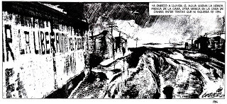 Vayamos a las fuentes. Revista SuperHumor Nº 1 (julio-agosto de 1980), página 65, columnas dos y tres. Entrevista a Alberto Breccia realizada por Carlos Trillo (el que piensa en un juego borgeano que levante la mano) y Guillermo Saccomanno. “Mataderos era un barrio que se me fue metiendo muy adentro –dice el dibujante-. Yo creo que en ‘Un tal Daneri’ salió algo de lo que yo veía en esos años de juventud. Esos paredones de ladrillo, esas calles de barro, esas nubes que parecían estar al alcance de las manos tan bajas. En Mataderos yo vi dos duelos criollos protagonizados por el Pampa Julio, un príncipe ranquel que se había hecho guapo. Uno de esos duelos, me acuerdo, era sólo a planazos, y se iban rebanando de a poco. Sí, ese era el Mataderos de Daneri”. El barrio que todavía no dejaba de ser campo, donde (¿otra vez Borges?) “la soledad y la muerte eran temas fundamentales, y también la meditación sobre el tiempo”.