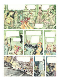 Bobillo, el otro 50 por ciento de esta dupla creativa, también es un genio. Su trazo fluye orgánicamente entre la arquitectura emocional de los protagonistas y el espacio físico que enmarca el devenir sensorial de los mismos. El arte de Bobillo me trae a la mente las imágenes fotográficas del francés Robert Doisneau, en especial aquellas instantáneas de la resistencia. Esas imágenes, como las viñetas de Sick Bird, están pobladas por infinidad de gestos sutiles y corrientes, que traslucen la ominosidad del escenario sin prescindir de la sonrisa, la sorpresa y el asombro ante las vueltas de la vida.