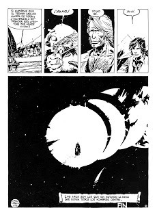 Si uno le hace caso al diccionario, el peregrino es, en una de sus acepciones, aquel que anda por tierras extrañas. Algo que este Peregrino de Trillo y Breccia cumple a rajatablas, aunque la tierra extraña sea, en principio, la inconmensurable vastedad del océano. Y un par de páginas más tarde, la extensión inabarcable del espacio exterior. Porque uno de los grandes méritos de El Peregrino de las estrellasreside en la justa fusión de la clásica literatura de aventuras marítimas, con el Moby Dick de Herman Melville cocinado al fuego trágico de Joseph Conrad (no casualmente, el protagonista principal de la historieta es el capitán Harris Conrad); y la literatura clásica de ciencia-ficción, donde el entorno alienígena funciona como metáfora de la propia alienación. Todo, además, narrado con ritmo de fábula, de alegoría moral sobre la condición humana.