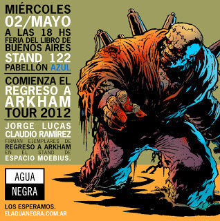 (Información de prensa) Hoy, a las 18:00 horas, en la Feria del Libro de Buenos Aires, Jorge Lucas y Claudio Ramírez firman ejemplares de su libro Regreso a Arkham, en el stand de Espacio Moebius (stand 122, Pabellón Azul).