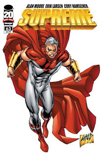 Supreme Nº 63. Guión: Alan Moore. Dibujos: Erik Larsen y Cory Hamscher. Color:Steve Oliff. Portadas: Erik Larsen, Cory Hamscher y Rob Liefeld. Editor:Eric Stephenson. 32 páginas a todo color. Image Comics. ISSN:70985301179806311. EE.UU., abril de 2012.