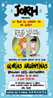 El domingo 13 de mayo, a las 11:00 horas, en el club Glorias Argentinas (Bragado 6875, Mataderos, CABA). Se rifarán dibujos y libros a beneficio del club. ¡Los esperamos!Colectivos que te acercan: 49, 55, 63, 88, 92, 104 y 180.