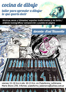 Técnicas secas y húmedas. Soportes tradicionales y no tanto. Análisis iconográfico. Composición y puesta en página.Viernes de 15:00 a 18:00 horas. Sábados de 10:00 a 13:00 horas, en Plataforma La Dársena, Mario Bravo 298, Ciudad Autónoma de Buenos Aires. Informes: plataforma_ladarsena@yahoo.com.arMás información: