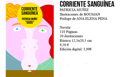 Corriente sanguínea está escrito por Patricia Muñiz (Barcelona, 1970. http://paginasfreneticas.blogspot.com/) e ilustrado por Bouman (Barcelona, 1983. http://www.boumanstudios.com/). El prólogo es de Ana Elena Pena http://anaelenapena.blogspot.com.es/) e incluye una viñeta invitada de Gustavo Sala (http://angosto.blogspot.com.es/). En un mundo que se disuelve, cuatro personajes solitarios se ven enredados en una trama de envidias, sexo y tecnología. Todo tipo de fluidos salpicarán las pantallas de sus terminales dónde correrán versos desbocados a la búsqueda del deseo. Disfrutaremos de las fechorías de unos personajes apasionados por el cine, que cobran vida en las delicadas ilustraciones eróticas que acompañan al texto. Dibujos elegantes, de trazo suave, que amortiguan el lado más gore de esta fantasía salvaje. Corriente sanguínea es un cuento que conecta con el lado más infantil del lector adulto más perverso ¡Gozarás! La novela ilustrada sale en formato físico que ya se puede reservar online desde la web de la editorial, siendo el 23 de abril, día de Sant Jordi, la fecha de salida. Y en formato e-book que ya está disponible desde la web de la editorial y en Amazon Kindle.