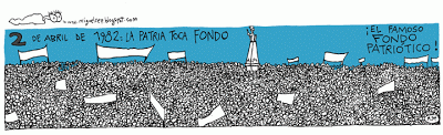 La única forma de intentar acercarse a la verdad más completa (la más compleja) es, me parece, no perder nunca de vista el contexto en que se desenvolvieron los acontecimientos. Las Malvinas son territorio argentino, eso está fuera de discusión. Y si los habitantes de las islas quieren ser ingleses que lo sean, están en todo su derecho; y tranquilamente pueden ser reconocidos como ciudadanos británicos que habitan y trabajan en el territorio argentino, al igual que los ingleses que viven, estudian y laboran en la Ciudad Autónoma de Buenos Aires, por poner un ejemplo. El Gobierno que nos llevó a la guerra era un Gobierno de facto, carente de toda legitimidad. Que momentáneamente llevara adelante una causa justa no lo justifica ni lo expía de todos sus delitos de lesa humanidad. Y que la llevara adelante de manera tan injusta y poco profesional, aumenta sus culpas y responsabilidades.