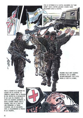 Afirmar que todos los militares presentes en Malvinas fueron hombres probos e íntegros; y que la Guerra fue una gloriosa epopeya cimentada en la defensa de la soberanía nacional, es tan maniqueo e incompleto como afirmar que no lo fue. El problema que tengo con Malvinas. Un grito de soberanía (en realidad, con toda la obra historietística de Fernández sobre la guerra del Atlántico Sur) es que me cuenta sólo una parte de la verdad, la parte que a él más le interesa. Y decir parte de la verdad, se sabe, es la base estructural de toda estafa.