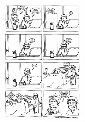 Siento y miento Vol. 1. Autor: Alfredo Rodríguez. Portada: Alfredo Rodríguez. 112 páginas en blanco y negro. Arcano Cuatro. ISBN: 978-956-8849-04-7. Chile, mayo de 2011.[image error]