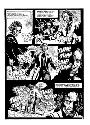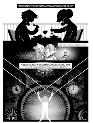 Los dibujos ilustran estas sensaciones, corporizan el terror a través de tintas espesas y collages fotográficos que hacen del claroscuro la argamasa palpitante del miedo. La recreación de época es notable, trabajando tanto la forma de los relatos como las sustancias que le dan sentido; y permite apreciar el ojo para los detalles de Lalia, que sabe ser tan recargado como despojado. Tal vez yo lo haya leído mal, pero lo que se me escapó es la fusión de ambos discursos, la innata característica identitaria que hace de la historieta algo mucho más complejo que la literatura dibujada.
