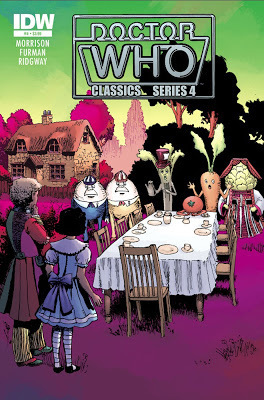 Doctor Who Classics Series IV Nº 4. "Prosiguen las reimpresiones recoloreadas de los relatos clásicos del Doctor Who. Esta nueva serie arranca donde terminara la Serie III, con las aventuras del sexto Doctor. Incluye dos historias autoconclusivas a cargo de Grant Morrison y Simon Furman (guiones); y John Ridgway (dibujos y portada).