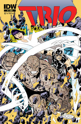 Trio Nº 1. "¡Zap! ¡Pow! ¡Bam! Son los efectos de sonido que podrás ver en esta serie, ya que John Byrne (guión, dibujos y portada) regresa a sus raíces con una nueva serie superheroica. Sus nombres clave son, simplemente, Uno, Dos y Tres, pero el mundo los conoce como Piedra, Papel y Tijera. Juntos, son Trio". Quiero verla.