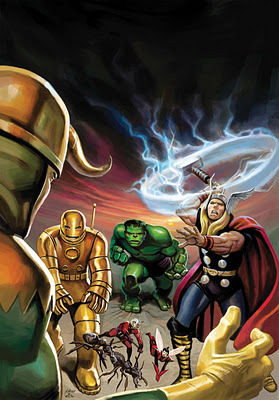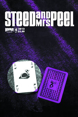 Steed and Mrs. Peel Nº 4. "Comienza The Deadly Rainbow. Al esposo de Emma Peel se lo ha dado por perdido en las junglas sudamericanas desde hace mucho tiempo… ¡Pero ha regresado! Después de encontrar a su amor perdido, Emma se despide de John Steed y se lanza a recorrer el país junto con su amado. Lástima que tan alegre reunión se vea hecha pedazos por aquello que ha venido siguiendo al Sr. Peel desde la selva. Anne Caufield (guión) y Ian Gibson (dibujos y portada) continúan con las excitantes aventuras de Los Vengadores clásicos, los de la serie británica de TV".