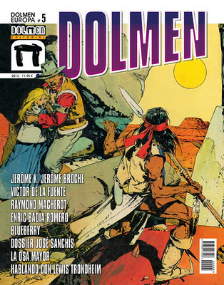 Dolmen Europa Nº 5. Dolmen. "Con artículos dedicados a Jerôme K. Jerôme Broche (por Miquel Esteba), Víctor de la Fuente (por Félix Velasco Fargas), Raymond Macherot (por Alfons Moliné), Enric Badía Romero (por El Rincón de Taradote), Blueberry (por Jordi Canyissà), la editorial francesa L'Association (por Didier Pasamonik), José Sanchos (por Manuel Barrero), el Salón de San Petersburgo (por Yexus), La Osa Mayor (por Miguel Fernández Soto), entrevista a Lewis Trondheim (por Yexus), Ana Merino como firma invitada y un pin-up de Astérix por Quim Bou".