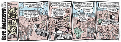 No debería haber pasado nada. O nada más que aquello que pasa siempre, gente divertida y/o molesta ante una tira con la que se puede (o no) llegar a algún tipo de acuerdo emocional y/o sensible. Pero no, este Bife angosto levantó polvareda mediática al ser considerado como "una falta de respeto a los sobrevivientes de la Shoá y una banalización del Holocausto", de acuerdo con el repudio que comunicaron oficialmente la DAIA (Delegación de Asociaciones Israelitas de Argentina) y la AMIA (Asociación Mutual Israelita Argentina). ¿La razón? La tira, fiel a sus costumbres y sentido del humor, con-jugó las fonéticas del apellido del DJ de moda, David Guetta; con los guetos donde fuera confinada la población judía durante la ocupación nazi de Europa del Este. El resultado, ambientado en los campos de concentración, con Hitler y las víctimas del genocidio unidas en feliz FieSSta, es lo que enervó algunos ánimos.