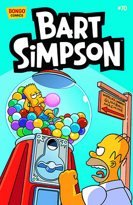 Bart Simpson Comics Nº 70. "Con una pequeña ayuda (ok, más que una pequeña ayuda de Lisa), Homero está en camino de un asecenso en la planta nuclear. Después, Marge y Lisa necesitan salvar a Bart de él mismo… y su adicción al azúcar. Además, Sergio Aragonés se pierde en otra entrega de Maggie's Crib". Por Sergio Aragonés y James Lloyd, entre otros. Portada de Jason Ho y Mike Rote.