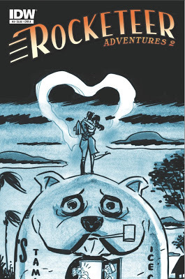 Rocketeer Adventures Nº 2. "La segunda entrega de Rocketeer Adventures, poblada de estrellas, cruza el cielo con tres relatos de alto vuelo. Arrancamos con una historia ambientada en un siniestro campo de batalla, con una carrera desesperada para salvar la vida de un soldado. Le sigue un celoso Cliff vigilando a Betty con su estilo inimitable. Y terminamos con un icono de Hollywood en peligro. Otras 25 páginas de preciosas historias gráficas… Y todo por el precio de una revista regular de 22 páginas". Por Paul Dini, Walter Simonson y Tom Taylor (guiones), John Paul Leon, Bill Morrison y Colin Wilson (dibujos). Portadas de Darwyn Cooke y Dave Stevens.
