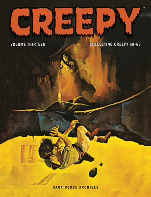 Creepy Archives Vol. 13. "Buen momento para ser fanático del horror. Celebra el tremendamente terrorífico decimotercer volumen de la serie Creepy Archives en tapas duras, con relatos clásicos a cargo de Bernie Wrightson, Bruce Jones y John Severin, en el momento en que la estimada revista iniciaba otro fructífero periodo de delicias aterradoras a mediados de los '70. Compilando los clásicos Creepy Nº 60 a 63, con trabajos a todo color de Richard Corben, Sanjulián y Ken Kelly; y obras en blanco y negro de Tom Sutton, José María Beá, Bill DuBay, José Gual, Steve Skeates y Leo Summers, entre otros".