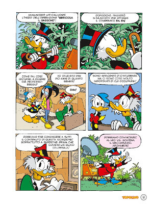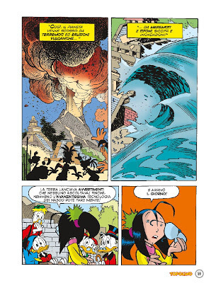 En el estricto rubro de las historietas, Topolino brilla por su ausencia en un número íntegramente dedicado al mundo de los patos, con las presencias casi exclusivas de Paperino (Donald) y Zio Paperone (Tío Rico). Cortos gags de una página (algunos con la obligada temática navideña que impone el calendario), aventuras más o menos largas de corte policial, costumbrista y hasta fantástico, material de relleno que acompaña (más o menos dignamente) el plato fuerte: La mediáticamente explotada profecía maya sobre el fin del mundo para el próximo 21 de diciembre de 2012, a cargo de uno de los más grandes dibujantes (Disney y no) italianos de la actualidad: Giorgio Cavazzano, recuperador del más clásico espíritu de Carl Barks, para quien las locaciones exóticas funcionaban como puerta de ingreso a la aventura, a la gran Aventura, aquella que sirve para formar al ser humano.
