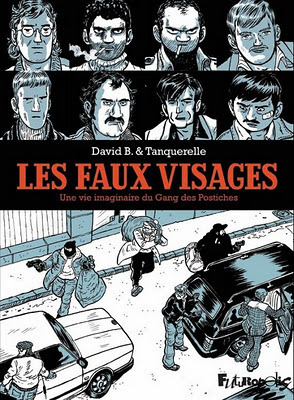 Les faux visages. Futuropolis. "Los años '80. Los años del dinero. Y cada uno, a su manera, quiere ganárselo. Ellos son ocho, en las alturas de Belleville. Uno es el cerebro, otro es golpeador. También están el callado, el místico, el antiguo proxeneta, el que se dice independiente, el viejo; y Rouve, el gitano cuyo hobby es la historia de los bandidos del siglo pasado. Ellos no guardan ninguna relación con el 'medio', el crimen organizado o la mafia. Se trata de 'un grupo de amigos, no de matones' que un día decidieron, para vengar a uno de los suyos asesinado por un policía, salir a robar bancos. Y gracias a la erudición de Rouve, e indirectamente a Marcel Schwob, tuvieron la brillante idea de disfrazarse. Con capuchas o medias de nylon. El reto es, durante los primeros momentos del asalto, pasar por clientes comunes y corrientes. ¡Larga vida a las pelucas, los postizos, los bigotes falsos, los sombreros, los turbantes y los hábitos de sacerdote! En cinco años los casos se multiplican, se atacan varios bancos en el mismo día; y hasta queda tiempo para vaciar las cajas de seguridad. La Policía está completamente impotente y obsoleta. No llega a comprender esa lógica, los motivos para elegir los blancos. Nace el mito. Y junto con el dinero fácil aparecen los policías corruptos. Y los copistas y plagiadores, que suman confusión y pistas". Por David B. (guión) y Hervé Tanquerelle (dibujos).