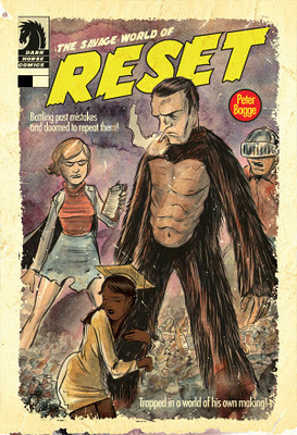 "Al principio me imaginé a Reset ambientada, mayoritariamente, en el fantástico mundo virtual de la imaginación del protagonista Guy Krause, pero rápidamente me di cuenta de que las situaciones que le iban ocurriendo simultáneamente en su vida real, eran mucho más interesantes; así que terminé enfocando más ese aspecto. Creo que la realidad es más extraña que la ficción; y esa es la razón por la cual, generalmente, no escribo cosas fantásticas", contó Peter Bagge.