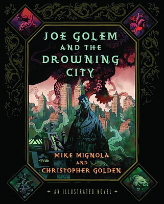 Joe Golem & the Drowning City. St. Martin's Press. "Novela ilustrada escrita a cuatro manos por Mike Mignola (creador de Hellboy) y Christopher Golden, con más de cien ilustraciones. Cincuenta años han pasado desde que los terremotos y el avance del mar sumergieron la zona baja de Manhattan bajo diez metros de agua, razón por la cual sus habitantes han empezado a llamarla la 'Ciudad Ahogada'. Entre ellos se encuentra la chica de 14 años Molly McHugh y su amigo y empleador Felix Orlov. Hacce mucho tiempo, Orlov el Prestidigitador fue un célebre mago, pero ahora es un viejo médium psíquico dedicado a contactar los espíritus de aquellos que han partido, a pedido de los seres queridos que han quedado haciendo el duelo. Cuando una sesión de espiritismo termina terriblemente mal, Felix Orlov es abducido por extraños hombres vestidos con máscaras de gas y trajes de goma; y Molly se ve obligada a escapar. Sus pasos la llevan hasta la empresa de Simon Hodge, un detective victoriano; y su leal ayudante juvenil, Joe Golem, cuyo propio pasado y verdadera identidad es un misterio hasta para él".