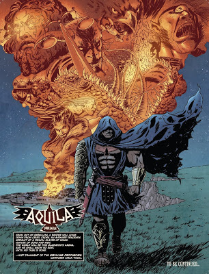 Con este especial navideño que confirma la tradición anual, el 2000 AD Prog 2012 (por el año, no por la numeración regular) trae consigo todo lo bueno y todo lo malo del formato antológico, que entusiasmará a los lectores más fieles y alejará a los lectores ocasionales, porque trabaja y enfoca los elementos constitutivos de series y personajes de larga data, completando el rompecabezas con los archivos que los fieles seguidores portan en sus pendrives mentales. El resto (me incluyo) que vaya preparado a no entender algunas cosas. En las cien páginas encontraremos historias unitarias (Judge Dredd, Sinister Dexter, Absalom, Dandridge), el inicio de nuevos seriales para veteranos personajes (Strontium Dog, Nikolai Dante) y la presentación de las nuevas series que se desarrollarán durante este año (Grey Area y Aquila, ¿el plato fuerte del 2012?).