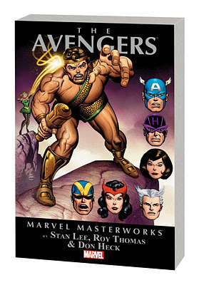 Marvel Masterworks: The Avengers Vol. 4. "¡Vengadores reuníos! Los héroes más poderosos de la Tierra están de regreso en otro poderoso volumen de la colección Marvel Masterworks con clásicos de la Edad de Plata. Agárrense fuerte, porque el Capitán América, Goliat, la Avispa, Ojo de Halcón, Rayo de Plata y la Bruja Escarlata se pelean contra los maléficos Hijos de la Serpiente, el Láser Viviente, Ultrana y el mismísimo Sub-Marinero. Este tomo de acción ininterrumpida cuenta con la participación especial del Hombre de Hierro, la Viuda Negra, Hércules y Nick Fury, e incluye la primera aparición de Bill Foster (futuro Hombre Gigante) y el comienzo de la sorprendente etapa del Narrador Supremo Roy Thomas al frente de Los Vengadores. Compilando The Avengers Nº 31 a 40". Por Stan Lee y Roy Thomas (guiones), Don Heck (dibujos) y Gil Kane y Richard Isanove (portadas).