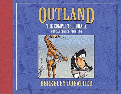Berkeley Breathed's Outland: The Complete Collection. "Berkeley Breathed, el genio loco que nos sorprendió y emocionó con Bloom County, está de regreso. Poco después de terminar Bloom County; y en el pico de su popularidad, Breathed volvió al ruedo con una nueva tira dominical: Outland. Debutando justo un mes después de que el final de Bloom County fuera impreso; y con muchos de los mismos personajes protagónicos, Outland continuó la tradición de su antepasado, yendo de la fantasía delirante a la sátira furiosa. Este volumen contiene todas las tiras publicadas de Outland, algunas de ellas nunca antes compiladas en libro; y casi todas han sido escaneadas del arte original, provisto por los archivos personales de Breathed. Más de 280 páginas dominicales, todos con color remasterizado, originalmente aparecidas entre el 3 de septiembre de 1989 y el 26 de marzo de 1995. Y además, este tomo incluye un segmento con una selección de la extremadamente rara Academia Waltz, la tira universitaria que Breathed realizó como paso previo a Bloom County".