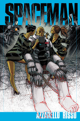 Spaceman Nº 5. Vertigo. "Prosigue la nueva serie épica del equipo autoral de 100 Bullets. Orson está más que complicado, intentando hacer las cosas bien en un mundo que está mal. Ahora, un misterioso hombre de su pasado está a punto de empeorarlo todo". Por Brian Azzarello (guión), Eduardo Risso (dibujos) y Dave Johnson (portada).