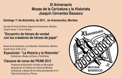 Anota en tu agenda: Domingo 11 de diciembre, a partir de las 11:00 horas de este año 2011, celebración del 11 Aniversario del Museo de la Caricatura y la Historieta, Joaquín Cervantes Bassoco, en Anenecuilco, Morelos.
