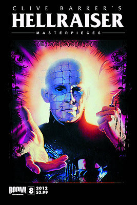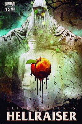 Hellraiser Nº 12. "Presencien el ansiado regreso de Clive Barker al frente de nuevos capítulos en la continuidad oficial de la serie, una trayectoria que cambiará para siempre a los Cenobitas y a Pinehead. El atrapante arco argumental que tiene a todo el mundo hablando, llega a su horrorosa conclusión. Con sangre en sus manos, Pinehead y Kirsty terminan la épica batalla que iniciaron, llevando la mitología de Hellraiser a otro nivel". Por Clive Barker y Anthony DiBlasi (guión), Stephen Thompson (dibujos); y Tim Bradstreet y Nick Percival (portadas).