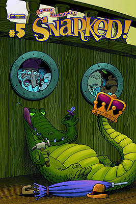 Roger Langridge's Snarked Nº 5. "Nuevo arco argumental. El viaje continúa; y la Princesa Escarlata, el bebé Rusty, la Morsa y el Carpintero, junto con la intrépida tripulación del Cazador de Snarks, surcan el mar en busca del desaparecido Rey Rojo. Aventuras de capa y espada, risas y cocodrilos… Este número los tiene a todos". Por Roger Langridge.