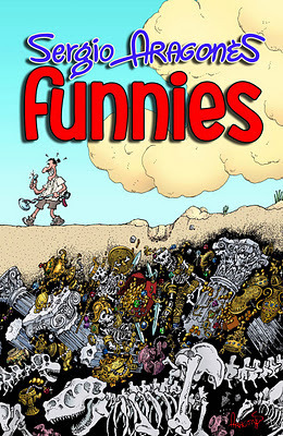 Sergio Aragones' Funnies Nº 8. "Este mes, Sergio se mete con el Viejo Oeste en una historia sobre un grupo de bandidos que deciden embarcarse en una carrera menos peligrosa y más redituable. Después, conozcan algo más sobre los famosos viajes de la revista Mad (uno de los favoritos de Sergio) a su país natal, México. Y, por supuesto, un montón de risas, chistes y rompecabezas para el camino". Por, obviamente, Sergio Aragonés.