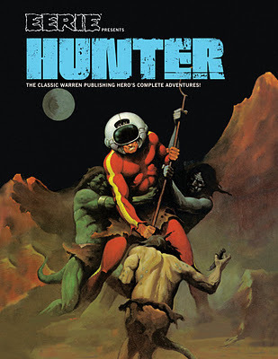 Eerie presents: Hunter. "Hijo de un general mutante y una madre humana, Hunter es un guerrero híbrido que pelea por su supervivencia en una salvaje y contaminada Tierra alternativa. Condenado a estar lejos de la humanidad, Hunter protege a los indefensos con la esperanza de que la humanidad pueda, algún día, sobreponerse a la barbarie. Síntesis perfecta de fantasía y narración de ciencia-ficción, Eerie presents: Hunter presenta el arte de Paul Neary y compila las historias de las tres encarnaciones del personaje. Con una nueva introducción a cargo de Mike Richardson, editor de Dark Horse Comics, este lujoso libro en tapas duras también incluye todas las piezas promocionales de Hunter y sus apariciones especiales que fueron publicadas en la andadura original del magazine Eerie". Por Richard Magopoulos, Budd Lewis, Bill DuBay y Jim Stenstrum (guiones); Paul Neary, Alex Niño, Moreno Casares, Al Sánchez y E.R. Cruz (dibujos). Portada de Ken Kelly.
