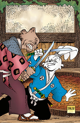 Usagi Yojimbo Nº 144. "El conejo ronin se envuelve aún más en la rivalidad existente entre los mercaderes de salsa de soja cuando se declaran la guerra entre ellos. El engaño y el caos escalan hasta alcanzar magnitudes mortales en esta entrega final de la saga de Usagi dedicada al espionaje y la salsa de soja". Por Stan Sakai.