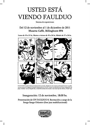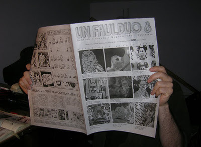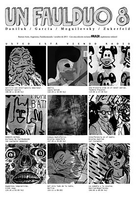 Un Faulduo acaba de lanzar el número 8 de su revista, dirigida en esta ocasión por Ezequiel García. La publicación consta de 16 páginas en formato tabloide de 41 x 29cms. y cuenta con trabajos de los cuatro integrantes del grupo, además de importantes invitados como Laura Spivak, Berliac ó Frank Vega.