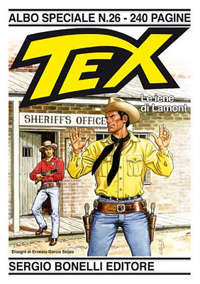 Tex Speciale Nº 26. "A la muerte de su padre, la joven Katie Evans regresa a Lamont, en Montana. A recogerla llega Vera, su madrastra, ex enfermera del padre y actual heredera y custodia del Ranch Circle T. Siguiendo el rastro de dos feroces ladrones, Tex y los suyos descubren que podrían estar escondidos en las tierras de los Evans y, llegados a la finca para investigar, terminan por descubrir un oscuro complot perpetrado con la idea de sustraerle a Katie todo aquello que le corresponde por derecho. Frente a las injusticias, Tex está acostumbrado a no quedarse con las manos en el bolsillo, así que aquellos que han tramado dañar a una joven inocente deberán prepararse para enfrentar el colt del Ranger". A cargo del popular Texone anual, con (muchas) más páginas y gran tamaño, nada más y nada menos que Claudio Nizzi (guión) y el argentino Ernesto García Seijas (dibujos y portada).