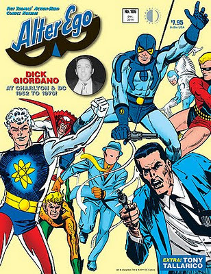 Alter Ego Nº 106. "Número especial dedicado a la carrera de Dick Giordano durante la década del '60, desde sus primeros años como artista freelance hasta sus inicios en DC, pasando por era de 'Héroes de Acción' de Charlton. Incluyendo dibujos de Steve Ditko, Pat Boyette, Pete Morisi, Frank McLaughlin, Jim Aparo y Gil Kane, entre otros. Además, la última aparición pública de Dick en un panel de la Heroes Con de Charlotte en 2009, junto con Steve Skeates y Roy Thomas. También, la primera parte de la entrevista de Jim Amash a Tony Tallarico, artista de Charlton (Blue Beetle, Son of Vulcan, The Great Society Comic Book); la sección fija del FCA (Fawcett Collectors of America), a cargo de Marc Swayze y Roy Ald; la Cripta del Cómic de Mr. Monster, de Michael T. Gilbert; Bill Schelly; y mucho más. Portada de Giordano. Editada por Roy Thomas".