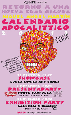 5 de noviembre, a las 18:30 horas, inauguración de la exposición de originales del calendario apocalíptico, con presencia del autor, en la Galería Miomao, Via Podan 19-21, Perugia.