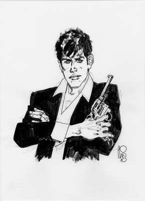 La expo (colgada en las paredes o impresa en el papel) celebró como se debe los 25 años de Dylan Dog, fenómeno editorial e icono cultural a tiempo completo, gracias a los complejos mecanismos internos con que Tiziano Sclavi pergreñó serie y personajes; y al tesón y la visión comercial del recientemente desaparecido Sergio Bonelli, que apostó por él cuando Dylan Dog era sólo el nuevo lanzamiento de la escudería editorial más importante de la historieta popular italiana. Es imposible imaginar al actual kiosco italiano sin sus (muchos, tal vez demasiados) títulos de Dylan Dog en exhibición. Pero hace 25 años, ese lugar había que ganárselo con imaginación, ingenio y una alta dosis de monstruos. Y el inquilino de Craven Road demostró estar a la altura de las circunstancias. O, tal vez, un poquitín más arriba.