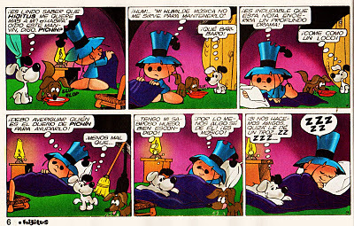 Lo que menos me gusta de esta experiencia es que, más allá del valor nostálgico que yo le aporto al proceso de lectura, no encuentro ningún otro interés en estas páginas impresas. Las historietas de Hijitus siempre fueron un producto subsidiario de la serie de televisión. Ni aún los episodios aparecidos en Antifaz (antes de que Hijitus obtuviera su propio título), siendo los más interesantes de toda la producción en cómic, llegaban siquiera a empardar el efecto del dibujo animado que hoy (con la distancia que imponen los años) puedo seguir disfrutando, sobre todo cuando mi hija se ríe con el cantito del Boxitracio. Es cierto que la historieta reproducía en el papel la misma lógica, los mismos personajes y la misma dinámica que el universo del Trulalá catódico, pero no tenían (ni ayer ni hoy) la misma magia.
