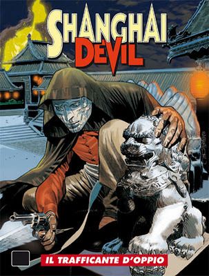 Shangai Devil Nº 1. Sergio Bonelli Editore. "Ugo Pastore llega a Shangai en 1897, para ayudar a su padre Enea, representante de la compañía comercial Caput Mundi. Sensible como él a la injusticia, rápidamente descubre que las potencias occidentales tienen comportamientos hostiles hacia la población local. Traba amistad con un joven actor, Ha Ojie, que lo acompaña al burdel de Madame Nang, donde conoce a Meifong, una prostituta tierna e inexperta, hacia la cual se siente muy atraído. El camino de Ugo, sin embargo, se entremezcla con el de Iosco Burke, un traficante inglés que comercia opio. En cuanto éste agrede a Meifong, Ugo decide hacerle pagar la afrenta y se calza, otra vez, su máscara de plata. Es el bautismo de fuego de un misterioso justiciero solitario, a quién los diarios ingleses dan el nombre de Shangai Devil". Primera entrega de la secuela de la exitosa miniserio Volto Nascosto, a cargo de Gianfranco Manfredi (guión), Massimo Rotundo (dibujos) y Corrado Mastantuono (portada).