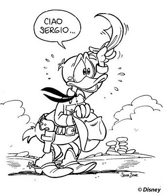 A una semana de la muerte del editor Sergio Bonelli, la decana revista Topolino (nombre con que se conoce en Italia a Mickey) homenajea el legado del creador de Tex con este dibujo de Silvia Ziche.