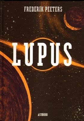 Lupus. Edición Integral. Astiberri. "Amor y aventura en una huida desesperada. Frederik Peeters retoma en Lupus muchos de los temas -el amor, la amistad, la muerte, la familia- de su exitoso relato autobiográfico, Píldoras azules, llevándolas al terreno de la ciencia-ficción y profundizando en ellos desde tangentes no habituales en el medio. Es esta una obra más madura e incluso en ocasiones más emotiva, ya que, pese a estar ambientada en un marco genérico -complejo y rico como pocos-, no deja de hundir sus raíces en el entramado de las siempre complejas relaciones humanas. Lupus empieza a la manera de un easy rider en el espacio, presentándonos a dos amigos, Lupus y Tony, que se dedican a viajar de planeta en planeta para disfrutar de los placeres del universo. Sin embargo, pronto, con la entrada de un tercer personaje, Sanaa, la trama da un viraje de 180 grados para convertirse en una especie de aventura iniciática a la fuga. Inicialmente publicado en cuatro volúmenes (2005-2007), se presenta ahora en un volumen integral de 400 páginas con una cubierta diseñada para la ocasión por su autor".