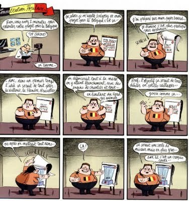 Intentando aportar su granito de arena, el semanario de historietas Le Journal de Spirou publicó una edición especial, titulada Salven a Bélgica, el pasado 21 de julio, día de la fiesta nacional del país. "Soy un ciudadano belga de Bruselas -confió Frédéric Niffle, redactor en jefe de la revista, a Libération-. Hace más de un año que el tema está en los titulares de los diarios; y me pregunto por qué no ha habido alguna reacción de la ciudadanía. Para mí, este número de Spirou era un deber cívico. Somos un pequeño iceberg en medio de la inmensidad y las cosas que se discuten son completamente ridículas, absurdas, sobre todo en este momento en que a Europa no le está yendo bien. Es sorprendente la respuesta mediática que ha tenido esta iniciativa en el extranjero, en Francia o en Canadá. Para los medios de comunicación, se trata de un conflicto político muy complejo de entender; y ésta es una forma novedosa de abordar el tema. Y para los lectores -tenemos un público familiar, con tantos adultos como niños-, una toma de conciencia. Si se la menciona en el Spirou, es porque la crisis es realmente grave".
