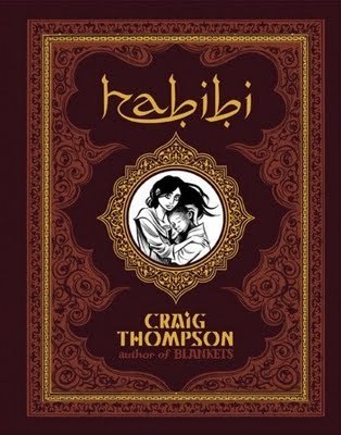 Habibi. "Del internacionalmente aclamado autor de Blankets, Craig Thompson, una nueva y esperada novela gráfica. Desplegándose a través de épicas panorámicas de desiertos, harems y el moderno desorden industrial, Habibi cuenta la historia de Dodola y Zam, niños esclavos refugiados unidos por la casualidad, las circunstancias y el amor que irá creciendo entre ellos. Vamos a seguirlos mientras sus vidas se van desplegando, juntos y por separado; peleando por hacerse un lugar en un mundo (no muy diferente al nuestro) movido por el miedo, la lujuria y la codicia; descubriendo la extraordinaria profundidad -y fragilidad- de su conexión. Contemporáneo y atemporal al mismo tiempo, Habibi nos ofrece una historia de amor de asombrosas resonancias: Una parábola sobre nuestra relación con el mundo natural, la división cultural entre el Primer y el Tercer Mundo, el patrimonio común del Cristianismo y el Islam y, sobre todo, la magia de la narración". Imprescindible.