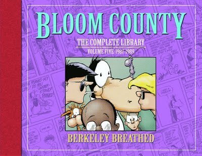 Bloom County: The Complete Library Vol. 5. "El quinto tomo de esta colección, ganadora del Premio Eisner e incluida en la lista de los más vendidos del New York Times, es también el último capítulo de Bloom County. Este volumen de la obra que le granjeó a Berkeley Breathed el Premio Pulitzer (¡perdón!) incluye el material originalmente aparecido entre el 30 de noviembre de 1987 y el 6 de agosto de 1989, día en que Breathed, en el punto más alto de su carrera, tanto en el reconocimiento del público como de la crítica, se alejó de Bloom County… dejándonos sólo bellos recuerdos y esta colección a la que podremos ir cada vez que tengamos ganas, para visitar a Opus, Bill, Steve, Milo y el resto de la banda". Por Berkeley Breathed.