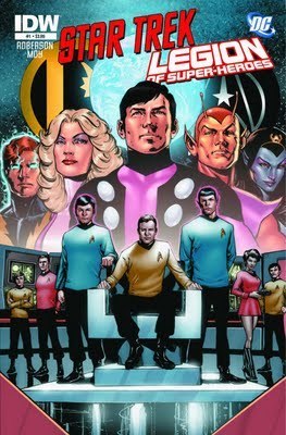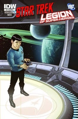 Star Trek/Legion of Super Heroes Nº 1. "El encuentro que nunca pensaste que podría llegar a ocurrir. IDW Publishing y DC Comics se enorgullecen en presentar el más grande relato del siglo XXIII. ¿O del siglo XXXI? Tal como verán en estas páginas, de ambos. El guionista nominado al Premio Eisner, Chris Roberson; y el veterano dibujante de Star Trek y Legionnaires, Jeffrey Moy, se unen para mostrarte la sociedad más bizarra de cualquier siglo. En este primer número, un grupo de Legionarios termina perdido en el siglo XXIII, pero es un universo que no reconocen ni la Legión ni la tripulación del USS Enterprise". Portadas de Phil Jimenez y Keith Giffen. Sólo para fanáticos muy fanáticos.